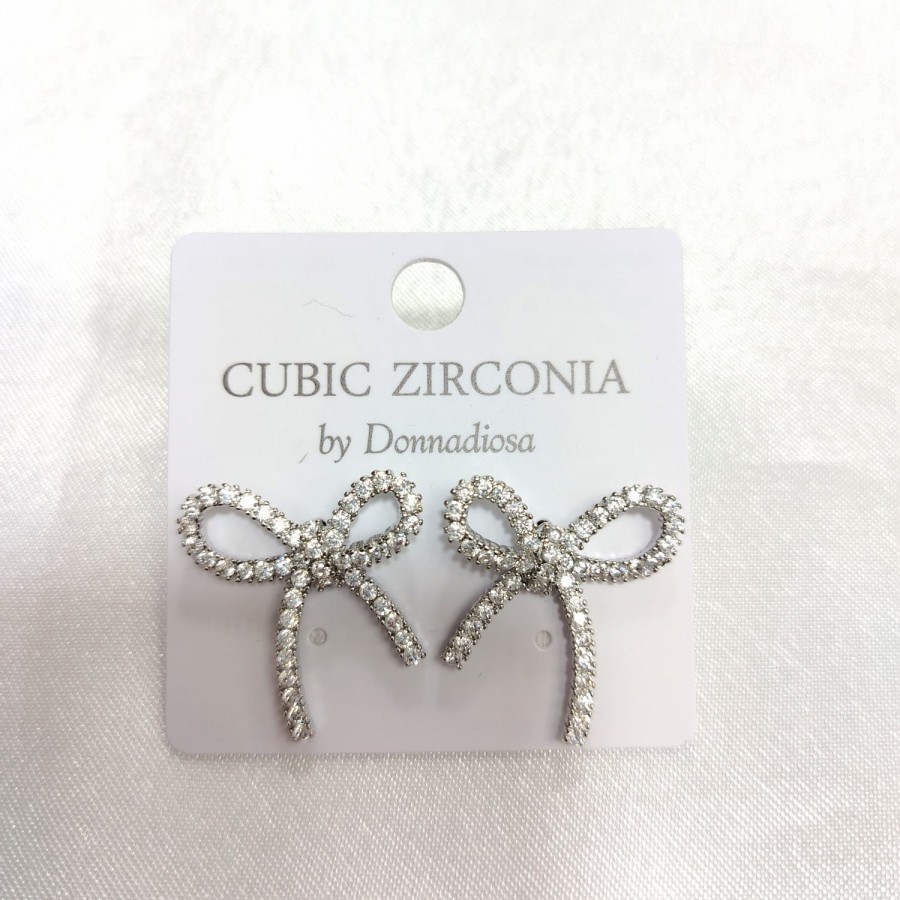 ARETE DE MOÑO PLATEADO DE CHAPA DE ORO CON ZIRCONIA MOD:E-2234 $199