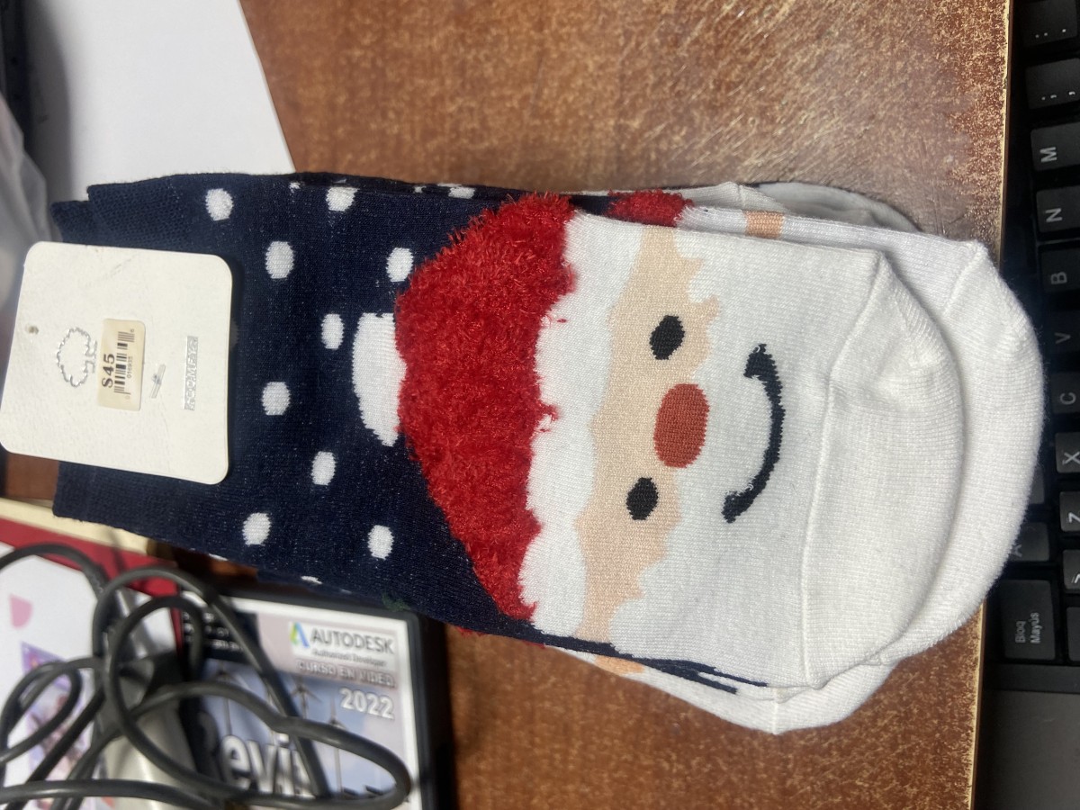 CALCETINES AZULES OSCUROS CON PUNTOS BLANCOS Y SANTA CLAUS $45