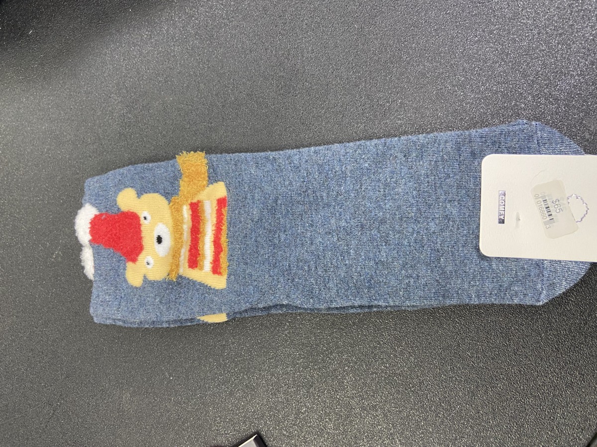 CALCETINES GRIS AZULADO CON OSO AMARILLO CON GORRO Y BUFANDA 3D $45