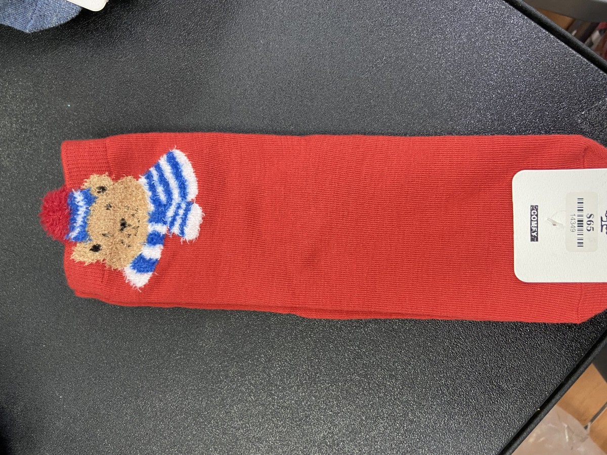 CALCETINES ROJOS CON OSO CON GORRO Y BUFANDA $45
