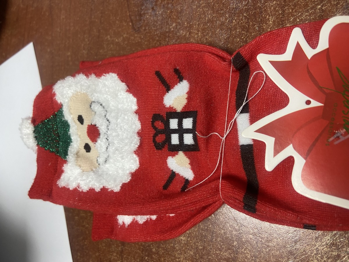 CALCETINES ROJOS NAVIDEÑOS CON SANTA CLAUS EN “3D” CON GORRO VERDE $45