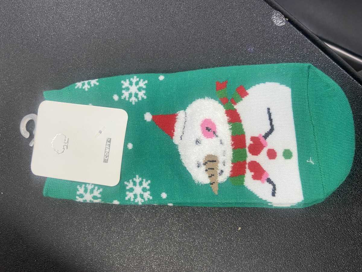 CALCETINES VERDES CON MUÑECO DE NIEVE 3D $45