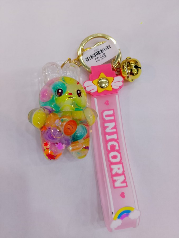 LLAVERO DE CONEJO DE CRISTAL CON BOLITAS DE COLORES $95
