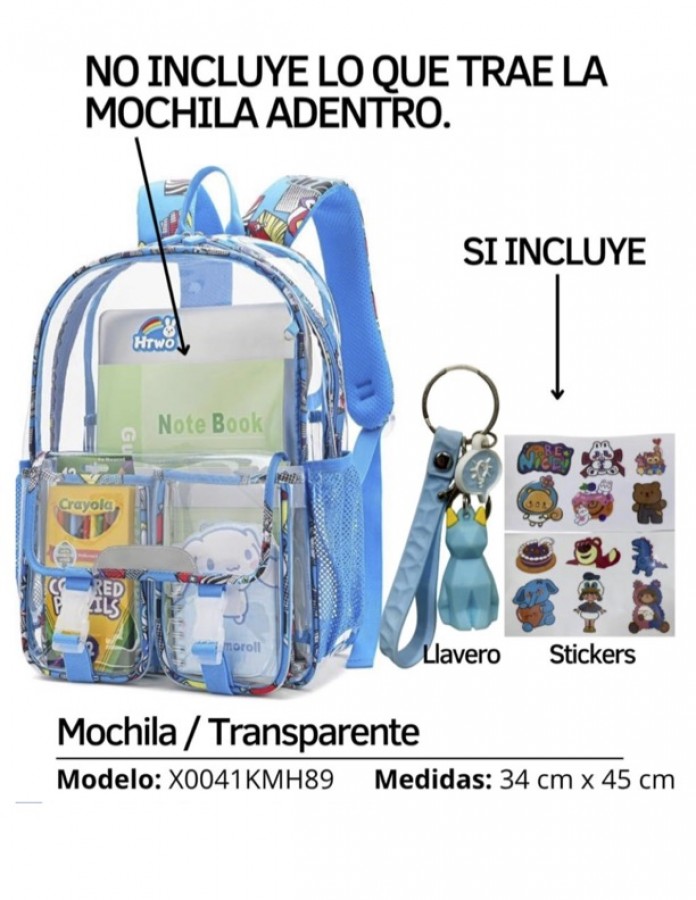 MOCHILA TRANSPARENTE AZUL NIÑO HTWO $450