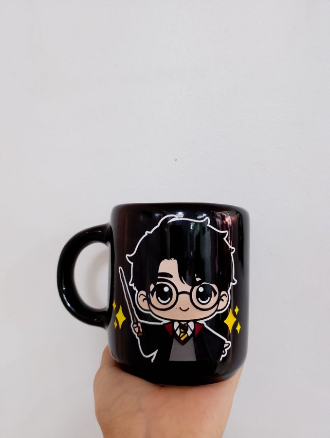 TAZA NEGRA HARRY POTTER CON BRILLOS $245