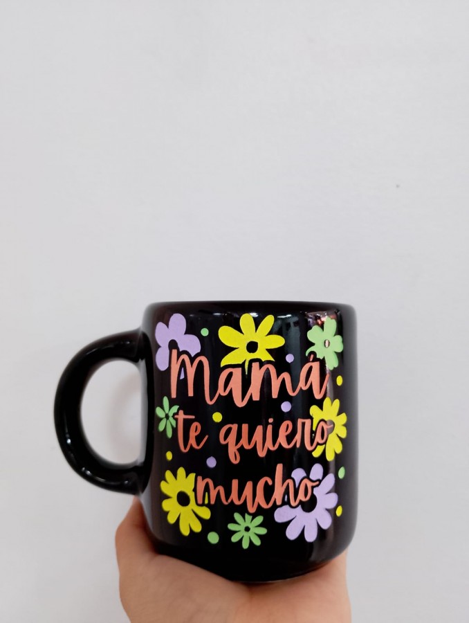 TAZA NEGRA MAMA TE QUIERO MUCHO $245