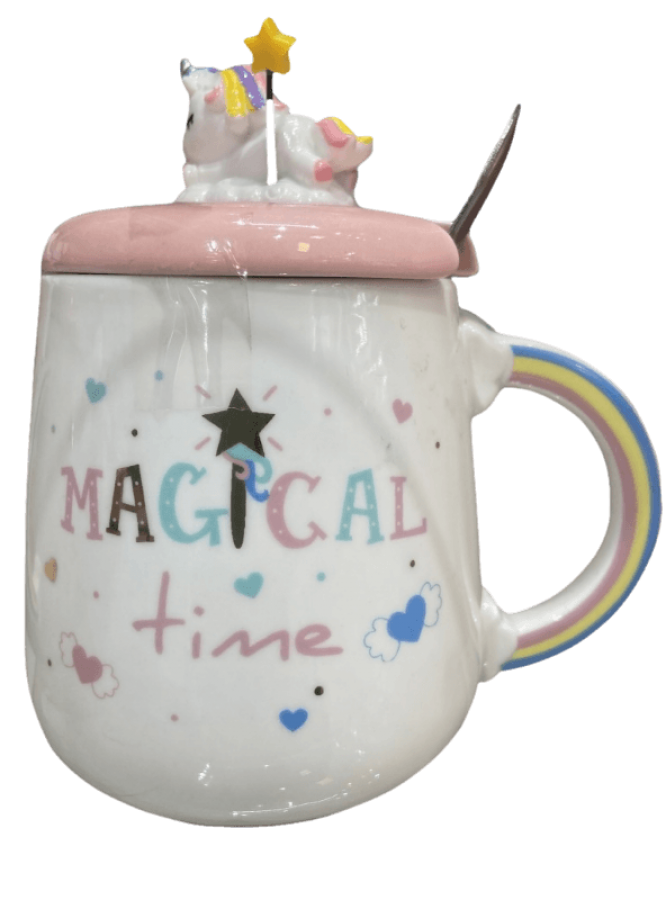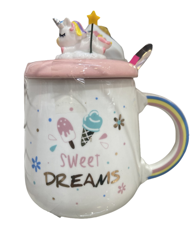 TAZA UNICORNIO, DRAGON , ASTRONAUTA Y GATO C/ CUCHARITA $245
