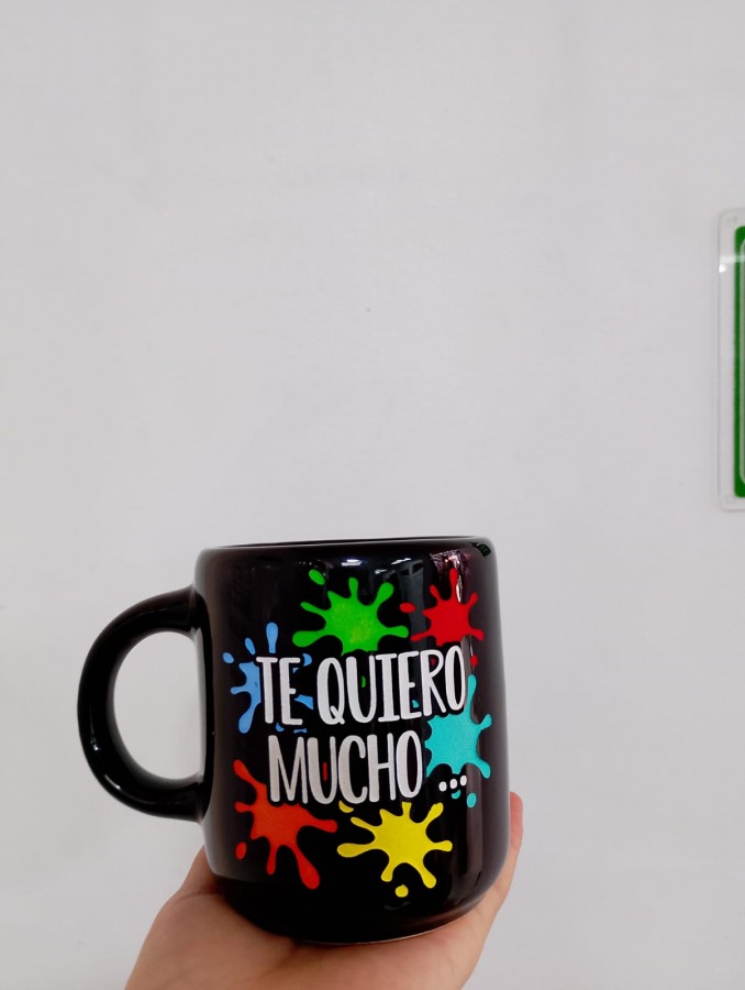 TAZAS NEGRA FRASE TE QUIERO MUCHO $245
