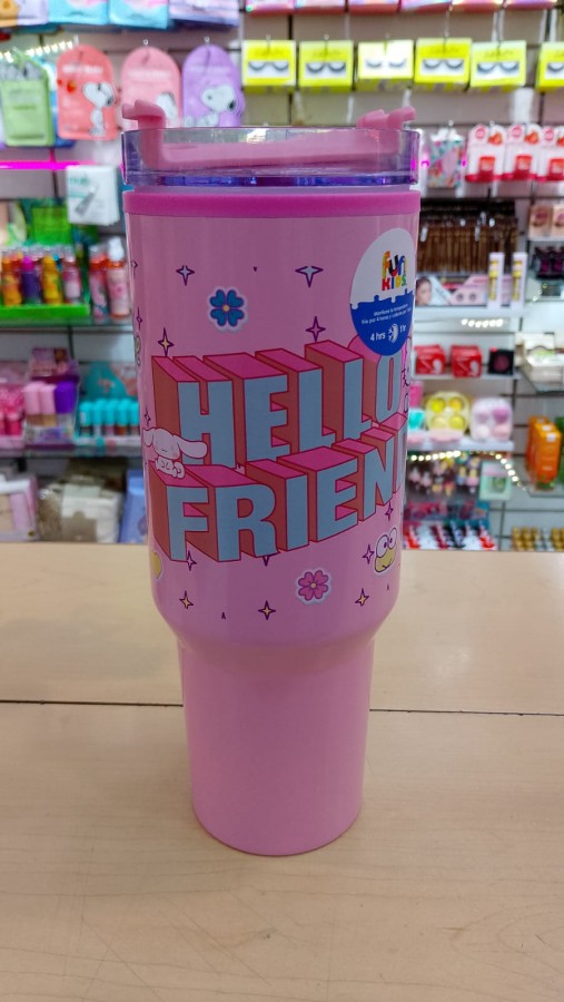 TERMO GRANDE COLOR ROSA CON AGARRADERA HELLO KITTY HELLO FRIENDS $399