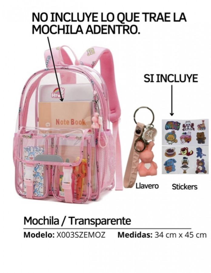 ZMOCHILA TRANSPARENTE GRANDE NIÑA CON BOLSILLLOS ADELANTE $450